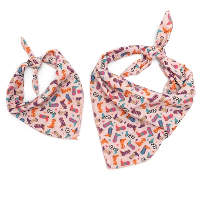 Traditional square tie-on bandanas for furry friends! Easy to wear, soft polyester fabric makes sure your dog stays comfortable while looking good. Simply fold down to find the perfect look and tie to fit around the neck. Available in two sizes to fit most pets (or even their owners): Small: 16″ x 16″ square; approximately 22″ diagonal fold; Large: 22″ x 22″ square; approximately 31″ diagonal fold.